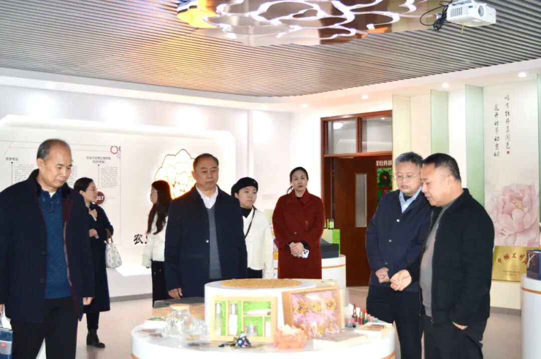 座谈会后,张明带领与会人员参观了菏泽学院牡丹研究成果展厅。