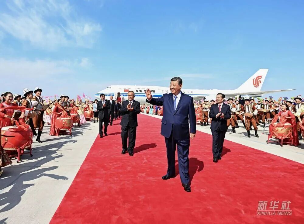 中共中央总书记、国家主席、中央军委主席习近平率中央代表团23日下午乘专机抵达乌鲁木齐,出席新疆维吾尔自治区成立70周年庆祝活动。习近平作为中共中央总书记、国家主席、中央军委主席率中央代表团到新疆出席新疆维吾尔自治区成立庆祝活动,在党和国家历史上是第一次,充分体现了党中央对新疆工作的高度重视、对新疆各族干部群众的亲切关怀。