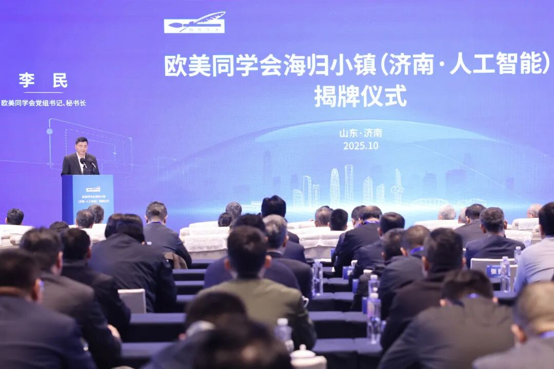 海归小镇由欧美同学会联合一些地方党委和政府共建,优选留学人员集中、产业资源集聚、发展动能强劲、人才条件充分的地区,建设以高科技产业为支撑的留学人员可持续发展事业基地。欧美同学会海归小镇(济南·人工智能)选址在“齐鲁科创大走廊”与济南自由贸易试验区叠加区域——济南超算科技城内,是中国第八个运营启动的欧美同学会海归小镇,未来将以人工智能全链条生态小镇为目标,持续深化“龙头带动、链式发展”模式,完善“人工智能+”创新生态,加速科技成果转化,打造具有全国影响力的人工智能创新示范区和新质生产力培育高地。欧美同学会党组成员、副秘书长程洪明,省委统战部副部长孙中亮,省欧美同学会副会长李琥、张祝秀,民盟省委会专职副主委孟令军,齐鲁工业大学(山东省科学院)党委书记吴衍涛,济南市领导巩宪群,市政府秘书长续明,归国留学人员、企业代表等200余人参加。