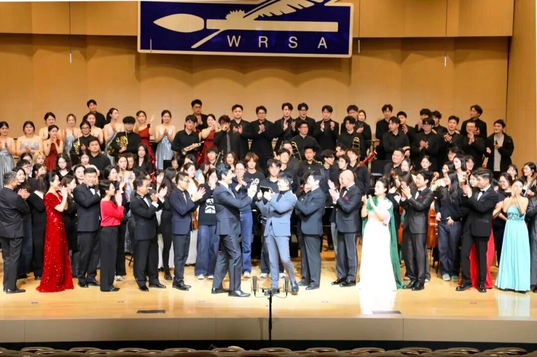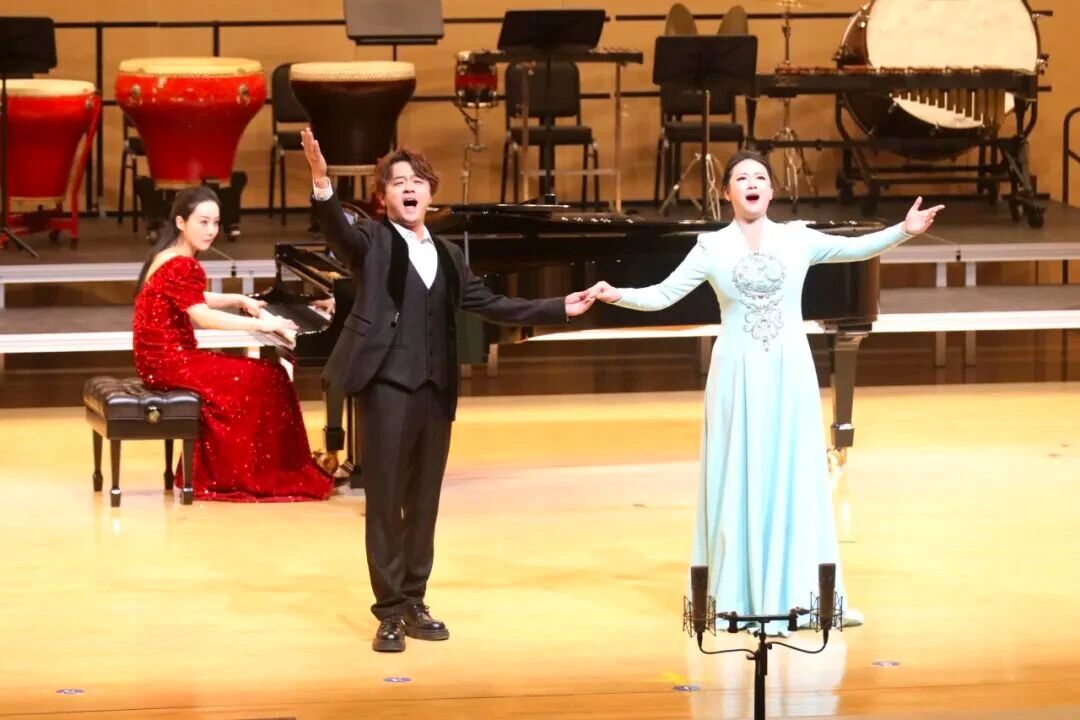 在下半场演出中,选自民族歌剧《沂蒙山》的男女声二重唱《等着我,亲爱的人》,深情再现了沂蒙精神的感人篇章;十位男高音歌唱家联袂献唱《啊,我的太阳》与《今夜无人入睡》,以磅礴气势震撼全场;《吉普赛男爵序曲》轻快活泼,《歌唱祖国》引发全场共鸣;男高音独唱《把一切献给党》、钢琴协奏曲《保卫黄河》、大合唱《我和我的祖国》,展现了留学人员群体浓浓的家国情怀,演出在欢乐祥和的气氛中圆满落幕。