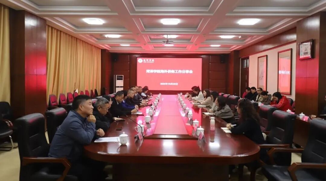10月20日,菏泽市侨联、菏泽学院侨界联合会联合举办“以‘侨’为‘桥’促共赢”海外侨务工作分享会。市侨联党组成员、副主席焦增云,菏泽学院党委统战部常务副部长杨洪海出席会议,菏泽学院侨界联合会副会长、国际交流与合作处副处长张自海主持会议。会上...